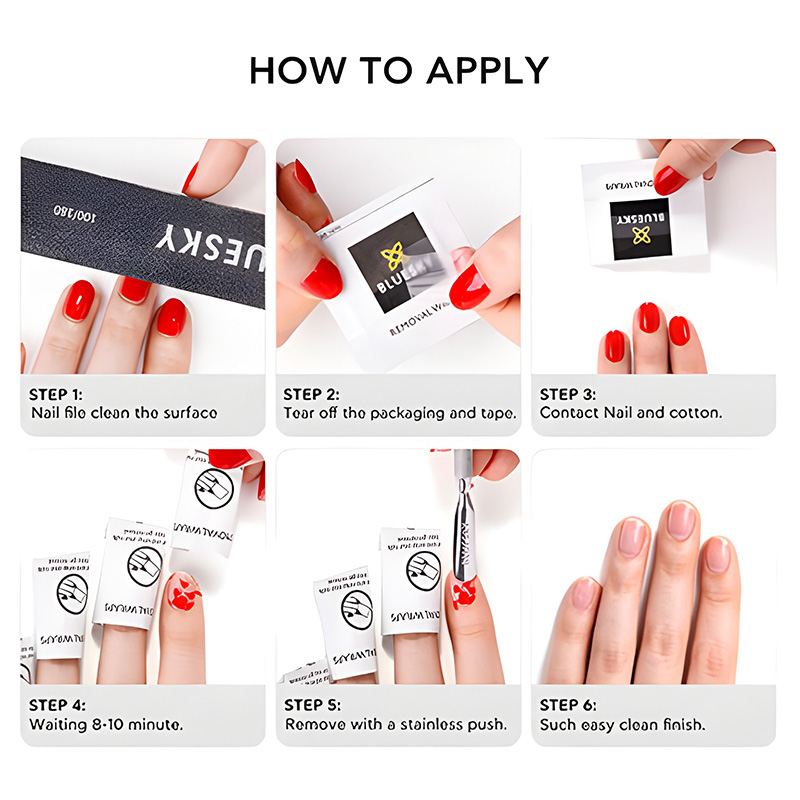 Bluesky Remover Wraps are pre soaked in removal liquid for fast and easy gel polish removal. Remove your gel polish in 10 – 15 minutes with our Bluesky Removal Wraps.