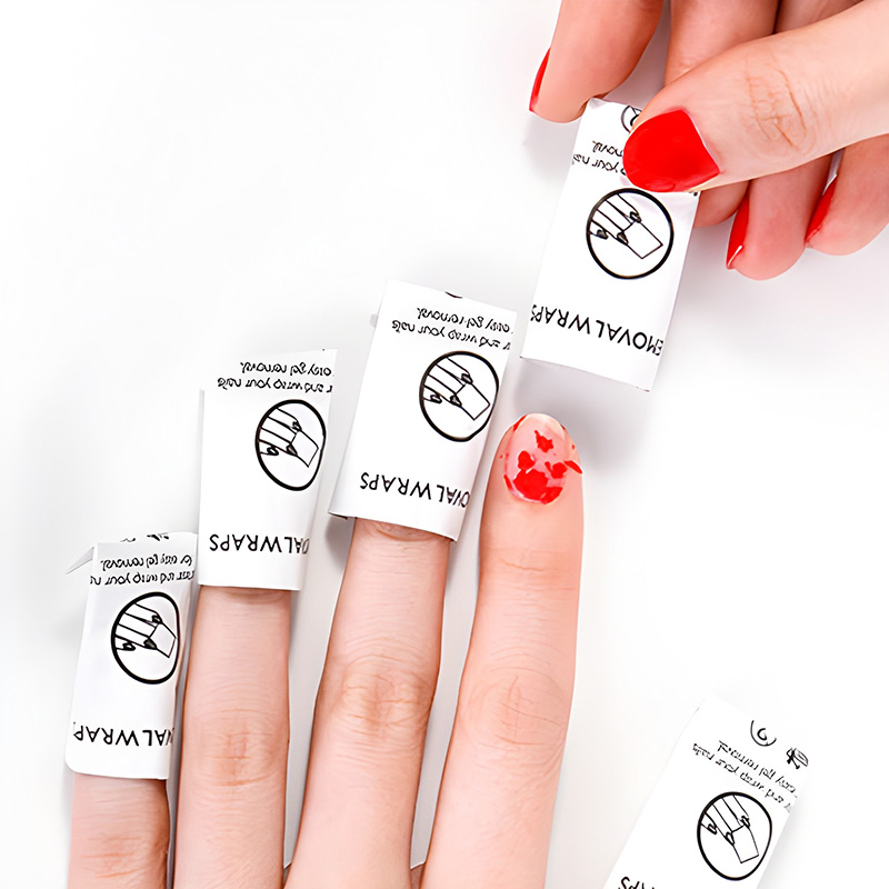 Place your finger inside the pre soaked remover wraps and leave them on for 10 – 15 minutes. After 15mins, remove the wraps and scrape off the gel polish with an orange stick or cuticle pusher.