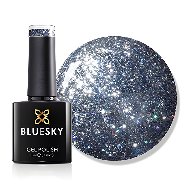 An eye catching gel polish collection; super shiny platinum glitter combined with colourful, delicate laser glitter for a mesmerizing sparkling effect.