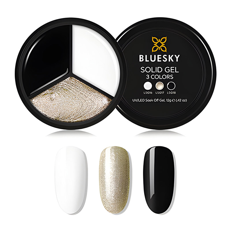 Solid Gel by BLUESKY is trio of complementing gel colours that cover your nails in just one stroke of the brush!